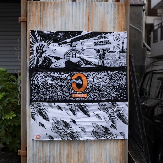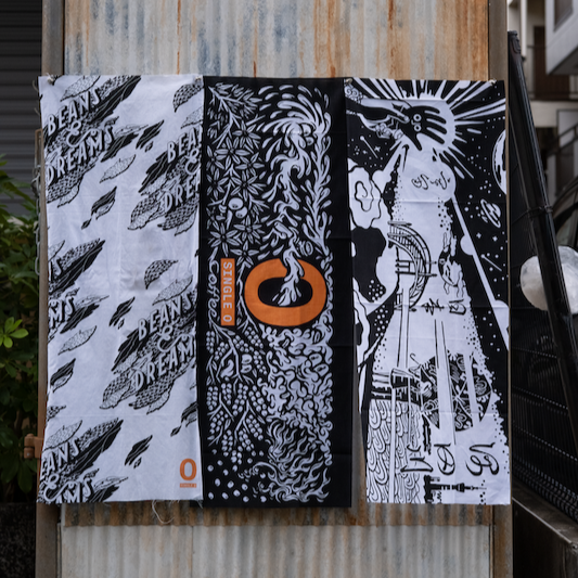 Single O Japanの各店舗では、アーティストがテーマに沿ったデザインを壁画や家具、オーニングなどに施しています。それぞれの店舗ごとに異なるデザインが楽しめます。今回はSingle O Shibuyaの手ぬぐいがリリースされ、この3店舗の手ぬぐいをセットにしました。