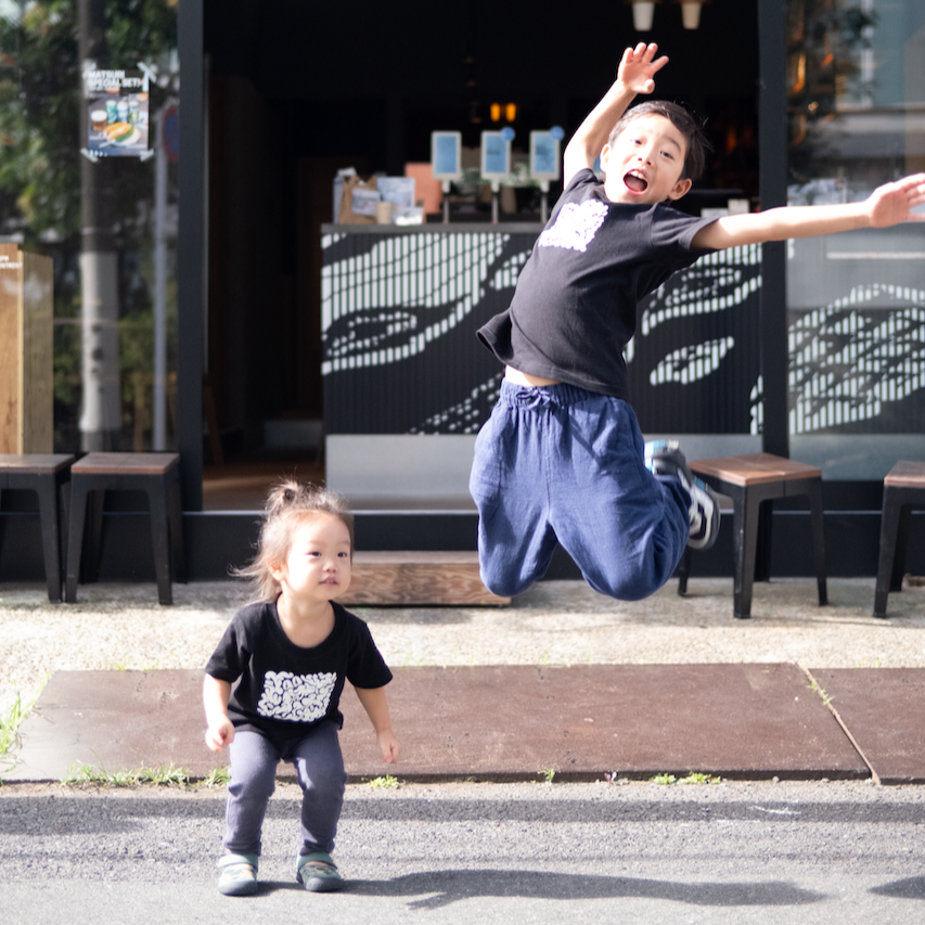 SINGLE Oから初のキッズサイズTシャツが登場!シドニー在住の日本人アーティスト、Kentaro YoshisaさんがデザインしたこのTシャツは、他では手に入らないオリジナル商品です。大人向けには、同じくKentaroさんのデザインが施されたTシャツをご用意しています。親子でお揃いにしても、少しデザインが異なるので、ペアルックになりすぎないおしゃれなコーディネートが楽しめます。大人Tshirtsはこちら