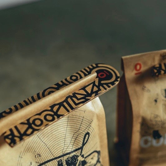 こちらのバッグにはZipがついていません。一般的なクリップや輪ゴムで止めるのはもちろんOKですがこちらのCOFFEE CLIP(別売)でとめてあげたらちょっとお洒落にキッチンを飾ります。さぁroll n' clip!