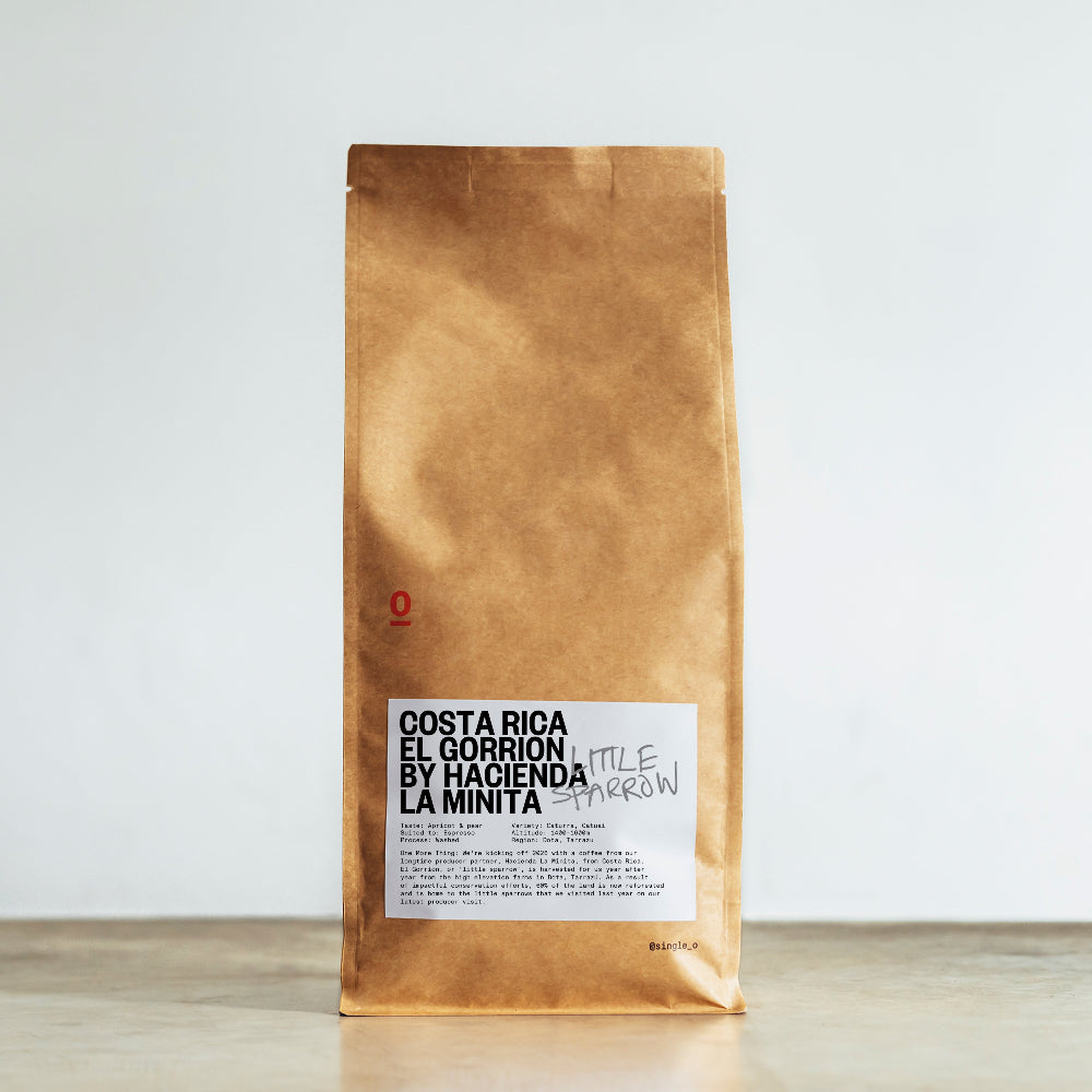 El Gorrión, or 'little sparrow', is harvested for us year after year from the high elevation farms in Dota, Tarrazú Costa Rica. As a result of impactful conservation efforts, 60% of the land is now reforested and is home to the little sparrows that we visited last year on our latest producer visit. Enjoy this smooth and citrusy coffee!
