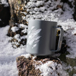 「Beans & Dreams」デザインのMiir Camp Cup。保温・保冷構造のカップは寒い日でも、温かいコーヒーを長く楽しんでいただけます。
